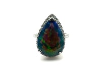 14CT WHITE GOLD PEAR CUT OPAL AND DIAMOND RING O...