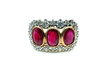 18CT ROSE GOLD OVAL CUT RUBY AND DIAMOND TRILOGY...