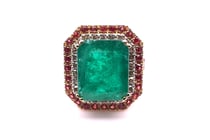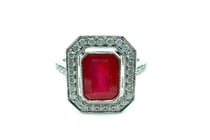 PT950 EMERALD CUT RUBY AND DIAMOND RING R =...