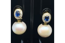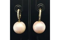 14CT YELLOW GOLD PEARL AND DIAMOND DROP...