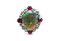 14CT ROSE/WHITE GOLD OVAL CUT OPAL, RUBY AND...