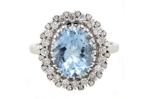 14CT WHITE GOLD AQUAMARINE AND DIAMOND PENDANT...