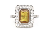 14K WHITE GOLD, EMERALD AND DIAMOND, ANTIQUE...