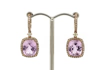 14K ROSE GOLD, KUNZITE AND DIAMOND, HALO DROP...