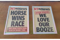 "NT News" Comical Headlines, Framed. SOLD as LOT.