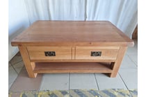 Coffee Table With 2 Drawers, Glass Top, Timber...
