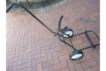 Golf bag trolley. Folds up for storage/transport.