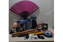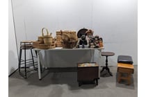 Assorted lot,includes, Cane baskets,dolls,Wooden...
