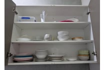 Assorted dishes and kitchen utensils includes...