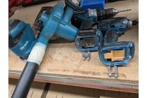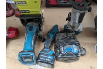 Assorted items includes Makita 3612C plunge...