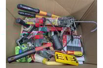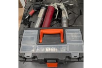 Assorted items includes grease guns, black...