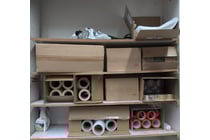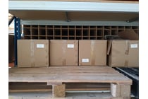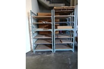Steel Shelving Stillages, Qty 4x, off-cut timber...