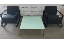 Lounge chairs with black covers, includes glass...