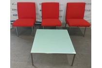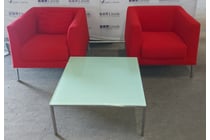 Lounge chairs with red covers, includes glass...