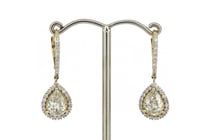14K YELLOW GOLD AND DIAMOND, HALO DROP EARRINGS....