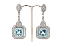 14K WHITE GOLD, AQUAMARINE AND DIAMOND,...