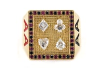 18K YELLOW GOLD, DIAMOND AND RUBY, CARD...
