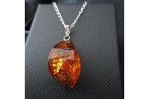 Estate Vintage Flecked Amber Pendant On Silver Cha