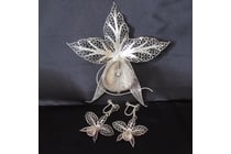 Estate Stunning Very Large Orchid Spun Silver Broo