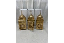 3x lanterns gold colour Size each 10cm x 10cm x...
