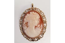 18CT YELLOW GOLD CARNELIAN SHELL PROFILE PORTRAIT...