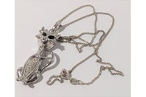 LARGE FAUX SILVER CAT PENDANT WITH STERLING...