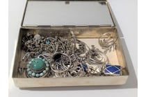 STERLING SILVER JEWELLERY IN METAL CIGARETTE CASE...
