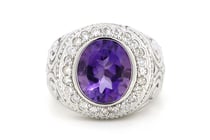 9CT YELLOW GOLD NATURAL AMETHYST & DIAMOND RING...