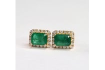 14CT YELLOW GOLD EARRINGS WITH 2 EMERALD CUT...