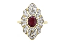 14K YELLOW GOLD, BURMESE RUBY AND DIAMOND,...