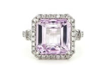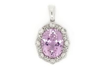 14K WHITE GOLD, KUNZITE AND DIAMOND, HALO...