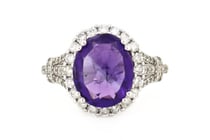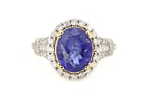 14K WHITE GOLD, TANZANITE AND DIAMOND, HALO RING....