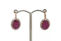 14K ROSE GOLD, RUBY AND DIAMOND, HALO DROP...