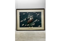 Artwork, piece showing HM Bark Endeavour ship