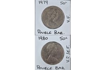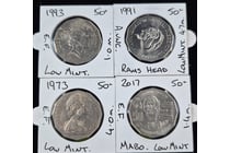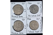 FOUR AUSTRALIAN SILVER FIFTY CENT COINS Years...