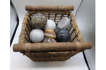 Basket with Various Decorative Spheres and Other...
