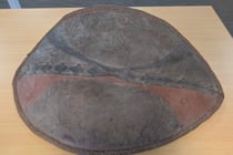 MAASAI WARRIORS HIDE PAINTED SHIELD, KENYA OR...