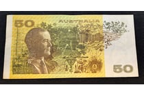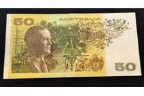 AUSTRALIAN FIFTY DOLLAR BANK NOTE WITH ERROR,...