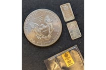 COLLECTION OF SILVER BARS AND COINS Includes 1...
