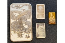 1/100TH OZ SCOTTSDALE GOLD BAR, 1 OZ SILVER YEAR...