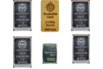 COLLECTION OF SILVER AND GOLD BARS 1/100 Oz 999...