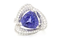 14K WHITE GOLD, 8.49CT TANZANITE AND DIAMOND,...