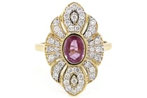 18CT YELLOW AND WHITE GOLD DIAMOND AND RUBY RING...