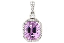 14K WHITE GOLD, KUNZITE AND DIAMOND, HALO...