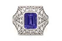 14CT WHITE GOLD CEYLON SAPPHIRE AND DIAMOND ART...