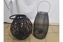 X2 Candle Holders, Rattan Style, Black Finish