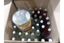 Assorted soft drinks and canned sliced...
