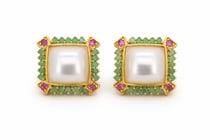 NATURAL EMERALD, RUBY & PEARL EARRINGS ON 925...