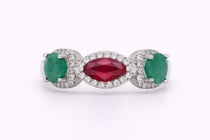 NATURAL EMERALD, RUBY & SAPPHIRE BANGLE ON 925...