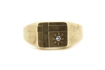 9K YELLOW GOLD AND DIAMOND, GENTS SIGNET RING....